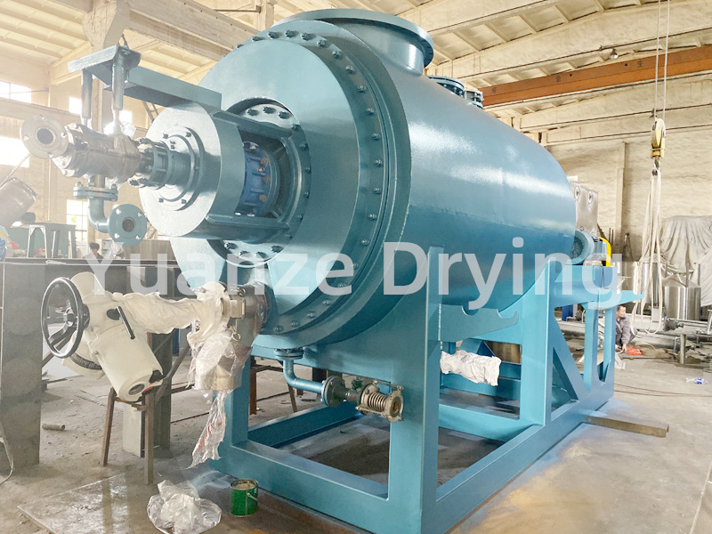 The middle of the vacuum rake dryer body is cylindrical, and the inside and outside of the body are divided into three layers. The heating medium in the middle jacket can be thermal oil circulation (pressure<0.3mpa gauge pressure) or steam (pressure<0.3mpa gauge pressure). The outer layer is made of ultra-fine glass wool, which has good insulation effect and low energy consumption. The inner layer is filled with materials, especially suitable for drying materials that are at risk of oxidation and heat sensitive materials, without damaging crystalline materials during the drying process, The strict restriction on materials containing metal ions and the requirement for the recovery (or toxicity) of volatile (or toxic substances to be discharged further demonstrate its superiority