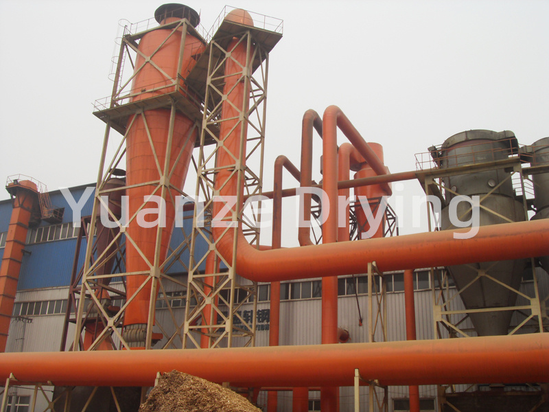 The bottom strengthening device is uniquely designed with diamond shaped stirring teeth, and its streamlined performance reduces wind resistance. It is installed in a conical hopper, with separate and fixed blades, resulting in significant crushing effect. The falling clumped material is quickly crushed into powder particles suitable for air drying. Another main function of stirring is to disperse the material, increasing the contact area with high-speed hot air entering under the hopper, So a fluidized bed with strong heat and mass transfer was formed in the hopper area, and most of the moisture was dried in the hopper area. As the drying process progresses, the lighter and finer dry materials are significantly affected by the airflow, rising together with the airflow and further drying, before coming out from the top of the drying tower and entering the material collection system.