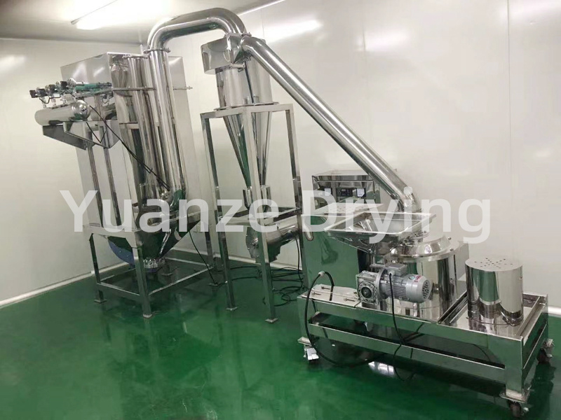 This series of micro crushers consists of three parts: the main engine, auxiliary engine, and electrical control. It is compact in design, has a reasonable structure, and is equipped with air selection, no screen, and no mesh. The machine is equipped with a grading mechanism, which can complete crushing and grading in one go. Negative pressure conveying allows the heat generated in the chamber during the crushing operation to be continuously discharged, making it also suitable for the crushing of heat sensitive materials. This machine has a wide range of applications, with continuous production processes and adjustable discharge particle size; Can handle the crushing and grading of various materials such as chemicals, food, pharmaceuticals, cosmetics, dyes, resins, shells, etc.