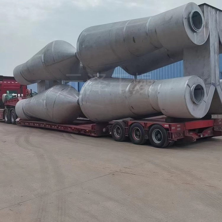 旋風(fēng)分離器采用立式圓筒結(jié)構(gòu),內(nèi)部沿軸向分為集液區(qū)、旋風(fēng)分離區(qū)、凈化室區(qū)等。內(nèi)裝旋風(fēng)子構(gòu)件,按圓周方向均勻排布亦通過(guò)上下管板固定;設(shè)備采用裙座支撐,封頭采用耐高壓橢圓型封頭。