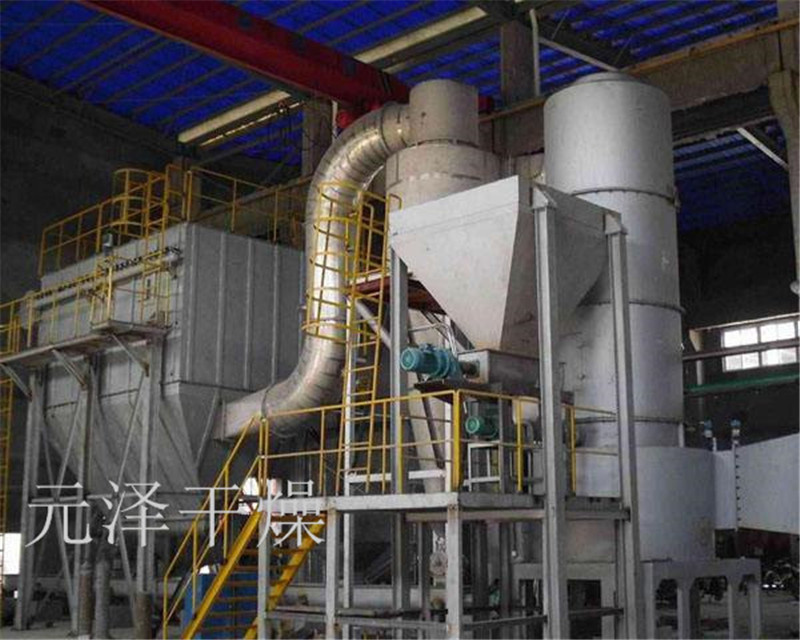 散粒狀固體物料由加料器加入流化床干燥器中,過(guò)濾后的潔凈空氣加熱后由鼓風(fēng)機(jī)送入流化床底部經(jīng)分布板與固體物料接觸,形成流態(tài)化達(dá)到氣固的熱質(zhì)交換。物料干燥后由排料口排出,廢氣由沸騰床頂部排出經(jīng)旋風(fēng)除塵器組和布袋除塵器回收固體粉料后排空。