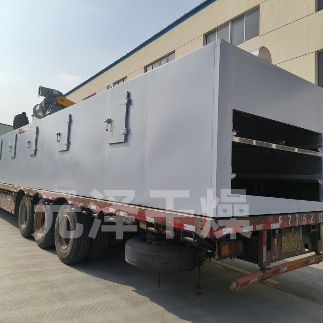 物料輸送:物料由加料器均勻地鋪在網帶上,網帶一般采用 12-60 目不銹鋼絲網,由傳動裝置拖動在干燥機內移動。
