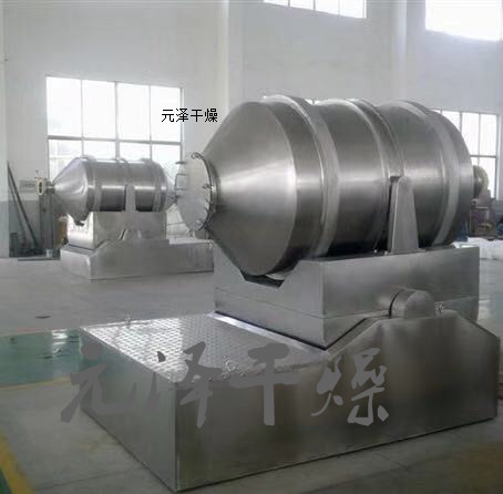 EYH系列二維運動混合機的轉筒可同時進行二個運動,一個為轉筒的轉動,另一個為轉筒隨擺動架的擺動。被混合物料在轉筒內隨轉筒轉動、翻轉、混和的同時,又隨轉筒的擺動而發(fā)生左右來回的摻混運動,在這兩個運動的共同作用下,物料在短時間內得到充分的混合。EYH二維混料機適合所有粉、粒狀物料的混合。