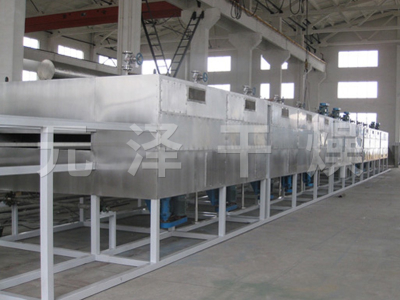 帶式干燥機是穿流連續(xù)式干燥設備,用于透氣性較好的片狀、條狀、顆粒狀物料的干燥,對于脫水蔬菜、中藥飲片等類含水率高、而溫度不允許高的物料尤為合適;該系列干燥機具有干燥速度快、蒸發(fā)強度高、產(chǎn)品質量好的優(yōu)點,對脫水濾餅狀的膏狀物料,需經(jīng)造粒或制成棒狀后亦可干燥。