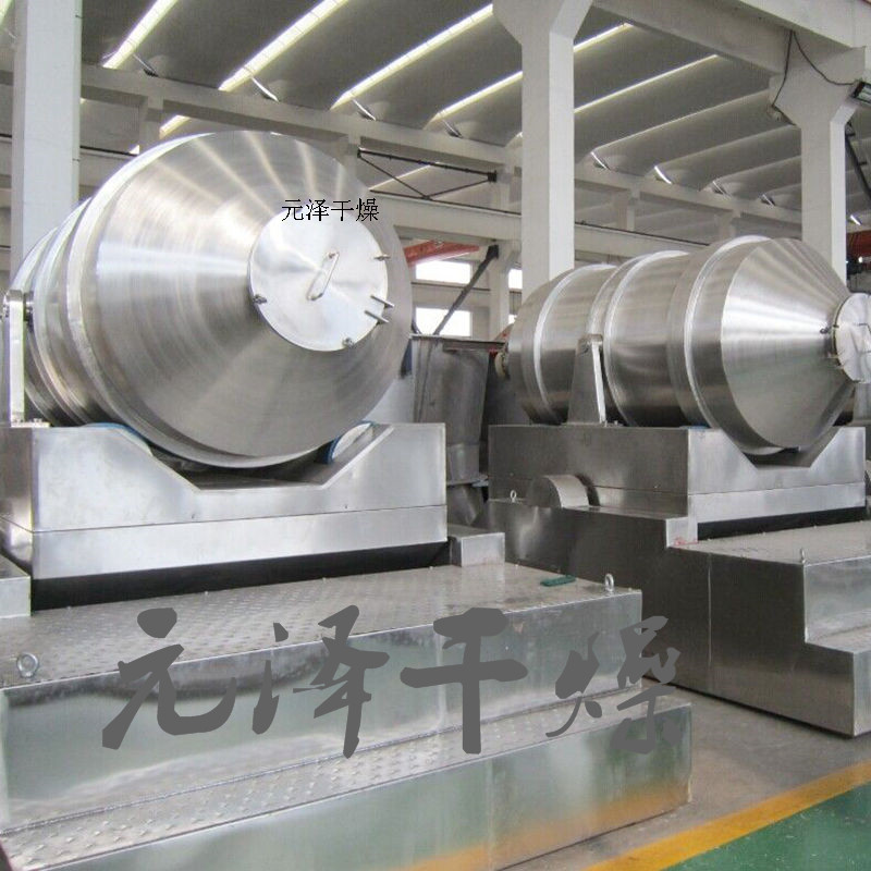 EYH系列二維運(yùn)動混合機(jī)的轉(zhuǎn)筒可同時進(jìn)行二個運(yùn)動,一個為轉(zhuǎn)筒的轉(zhuǎn)動,另一個為轉(zhuǎn)筒隨擺動架的擺動。被混合物料在轉(zhuǎn)筒內(nèi)隨轉(zhuǎn)筒轉(zhuǎn)動、翻轉(zhuǎn)、混和的同時,又隨轉(zhuǎn)筒的擺動而發(fā)生左右來回的摻混運(yùn)動,在這兩個運(yùn)動的共同作用下,物料在短時間內(nèi)得到充分的混合。EYH二維混料機(jī)適合所有粉、粒狀物料的混合。