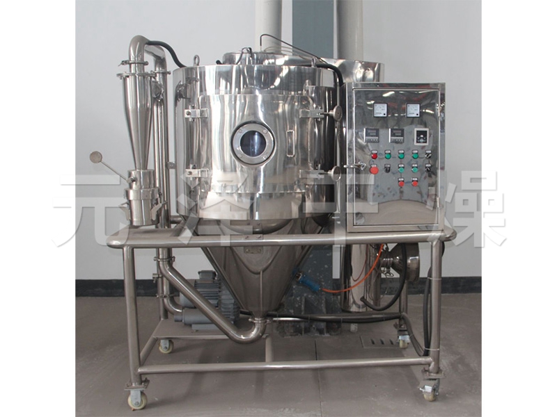 3、噴霧干燥機生產(chǎn)過程簡化,操作控制方便。對于濕含量40-60%(特殊物料可達90%)的液體能一次干燥成粉粒產(chǎn)品,干燥后不需粉碎和篩選,減少生產(chǎn)工序,提高產(chǎn)品純度。對產(chǎn)品粒徑、松密度、水份,在一定范圍內可通過改變操作條件進行調整,控制和管理都很方便。